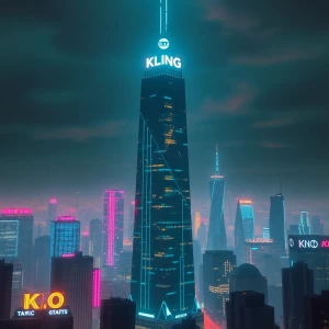 «image of a cyber skyscraper and "Kling" written on top»