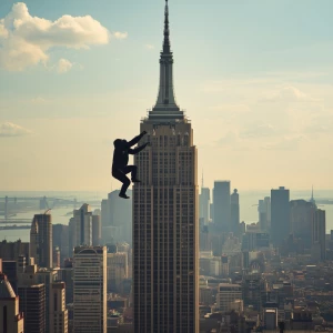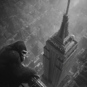 «King Kong climbing the Empire State Building.»