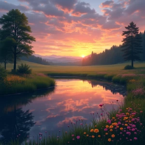 «Create a digital artwork of a picturesque countryside scene at s...»